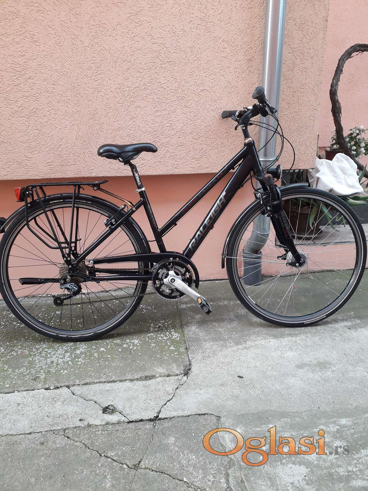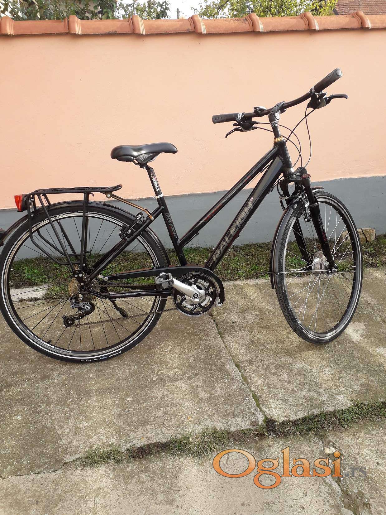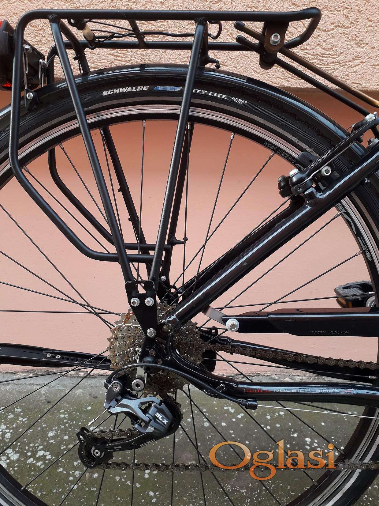 Odličan Britanski aluminijumski gradski biciklo , ram M veličine za ljude od 160 do 190 cm . SLX zadnji menjač , Šimano deore šifteri 3x9 , guma zadnja Schwalbe , guma prednja Continental . Šimano dinamo u prednjoj glavi , Šimano u zadnjoj glavi , sediste Selle Royal . Tel : 063 561 647