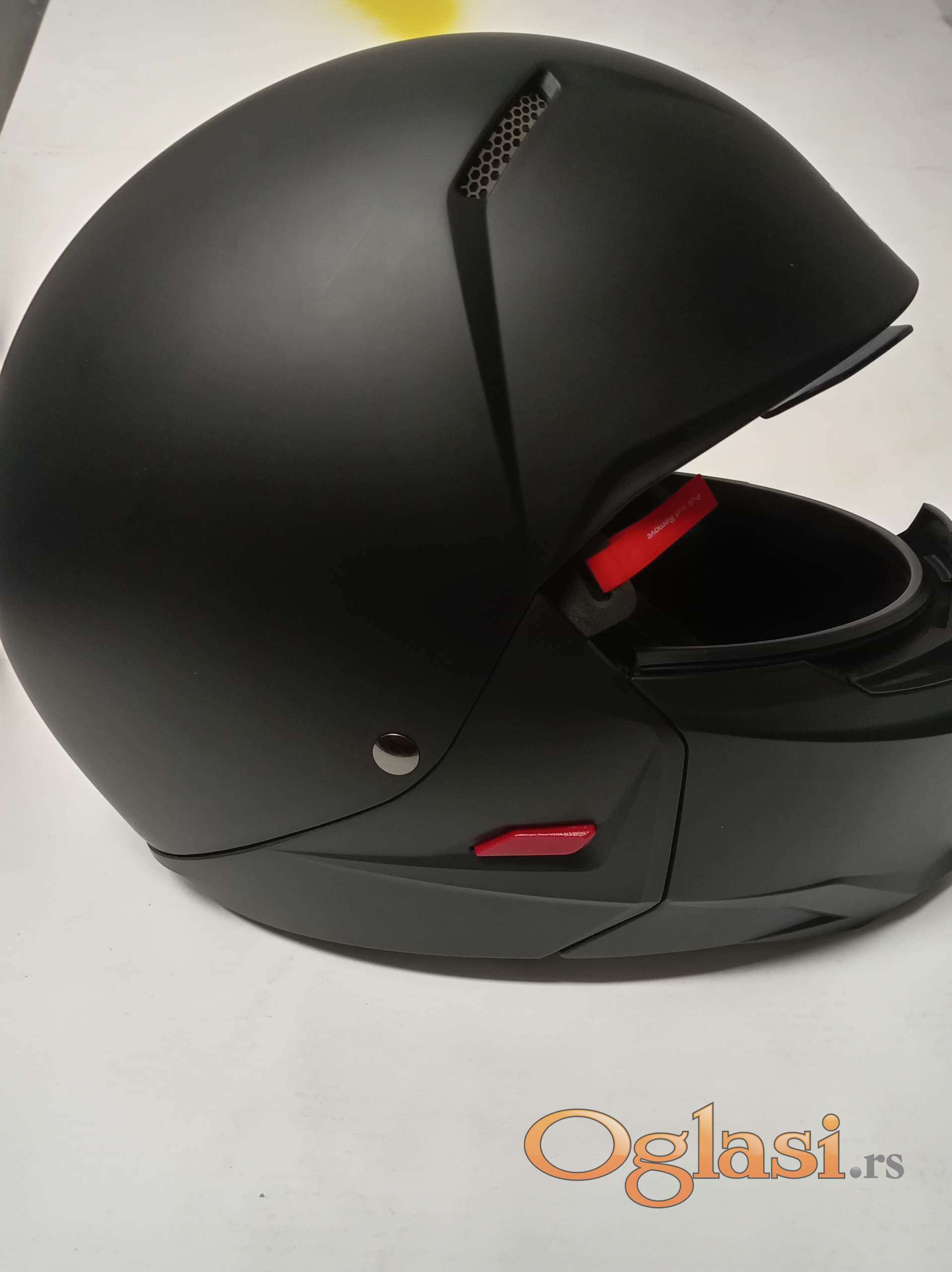 Kaciga nikada nije korišćena, dolazi u originalnom pakovanju sa svom pratećom opremom.