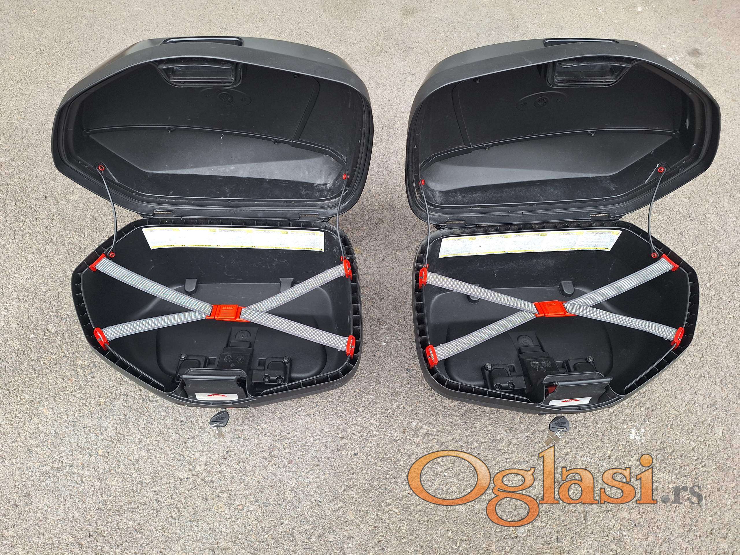 Prodajem bočne kofere Givi Monokey 35 litara, kao što se vidi na slikama koferi su malo izgrebani ali su funkcionalni i uptrebljivi, koferi nisu nigde pukli niti su lepljeni, Prošli vlasnik je promenio bravice tako da svaki kofer ima po dva ključa i svaki od 4 ključa otvara oba kofeta. Za ostele info pozovite.