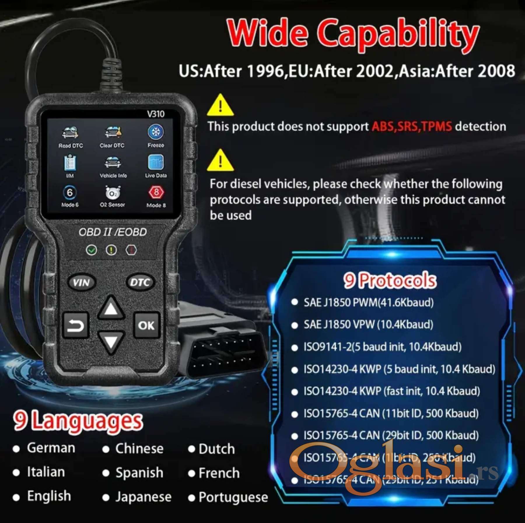 Ovaj proizvod ne podržava ABS, SRS, TPMS detekciju
